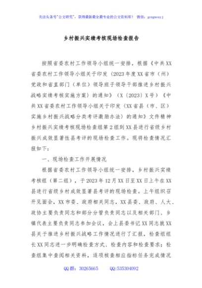 乡村振兴实绩考核现场检查报告