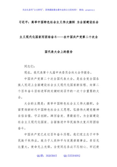 / 习近平:高举中国特色社会主义伟大旗帜 为全面建设社会主义现代化国家而团结奋斗——在中国共产党第二十次全国代表大会上的报告