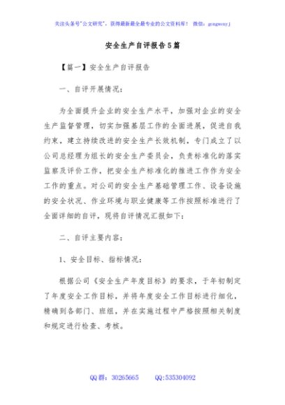 / (5篇)安全生产自评报告