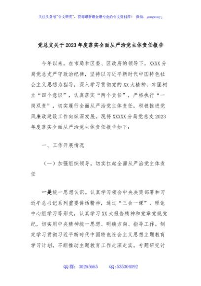 / 党总支关于2023年度落实全面从严治党主体责任报告