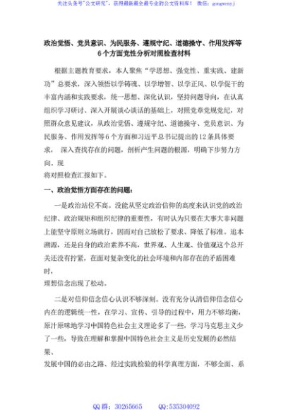 / 党员贯彻学习《政治觉悟、党员意识、为民服务、遵规守纪、道德操守、作用发挥等6个方面》心得