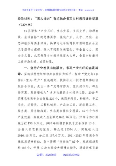 / 经验材料:“五大振兴”有机融合书写乡村振兴盛世华章