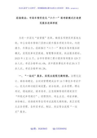 / 经验做法:市局车管所优化“六个一”驾考新模式打造便民服务改革样板