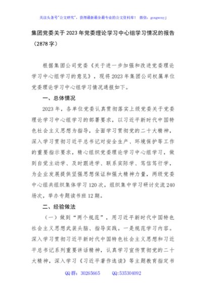 / 国企2023年党委理论学习中心组学习情况的报告