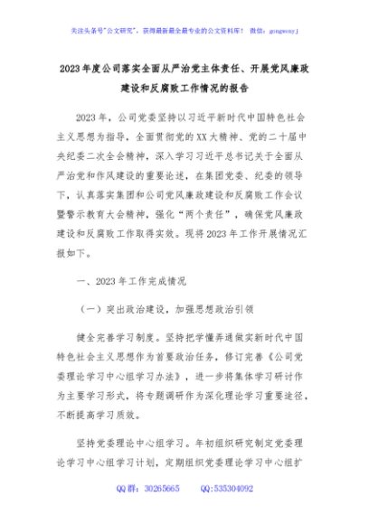 / 2023年度公司落实全面从严治党主体责任、开展党风廉政建设和反腐败工作情况的报告