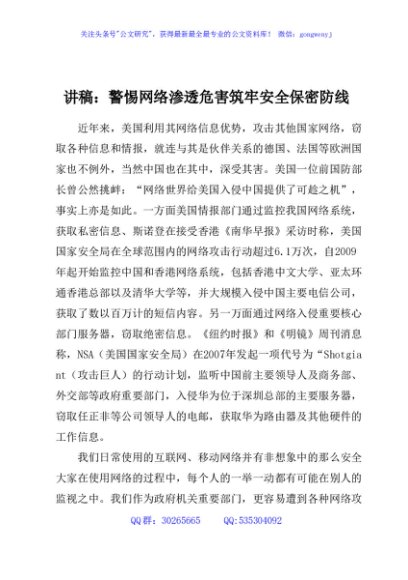 / 讲稿:警惕网络渗透危害筑牢安全保密防线