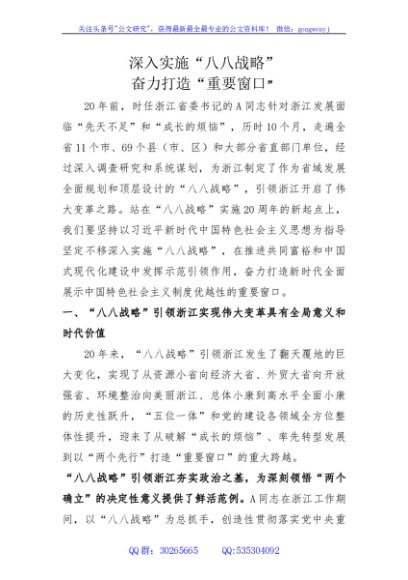 / 深入实施“八八战略”奋力打造“重要窗口”6700字