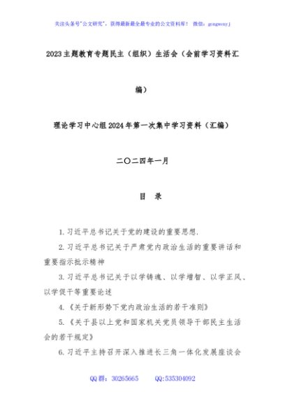 / 2023主题教育专题民主(组织)生活会(会前学习资料汇编)