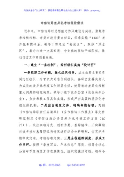 / 市信访局差异化考核经验做法