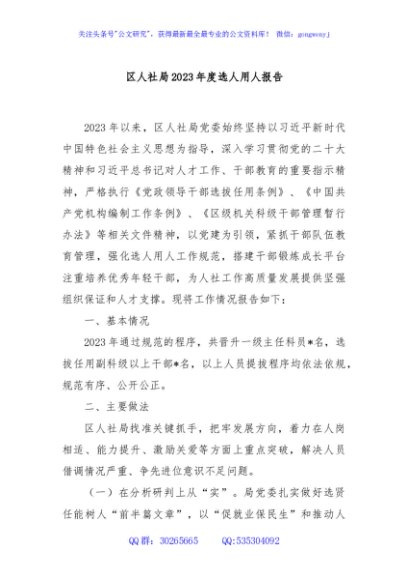 区人社局2023年度选人用人报告
