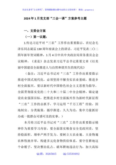 / 2024年1月党支部“三会一课”方案参考主题