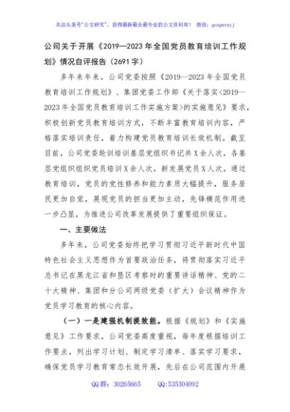 / 国企《2019—2023年全国党员教育培训工作规划》情况自评报告