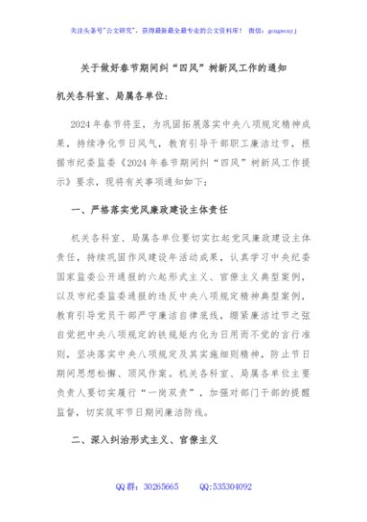 / 关于做好春节期间纠“四风”树新风工作的通知