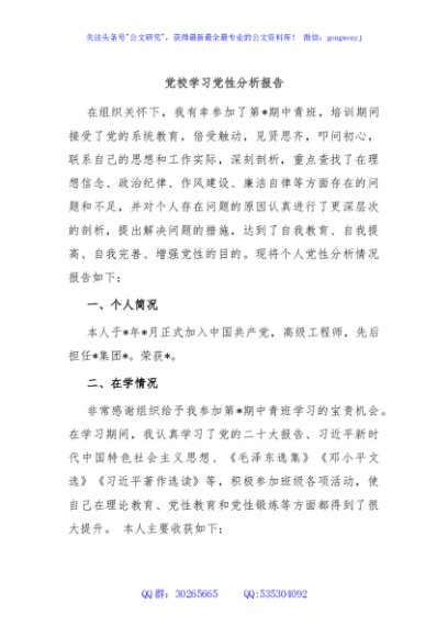 / 党校学习党性分析报告