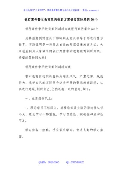 / 银行案件警示教育案例剖析方案银行案防案例50个