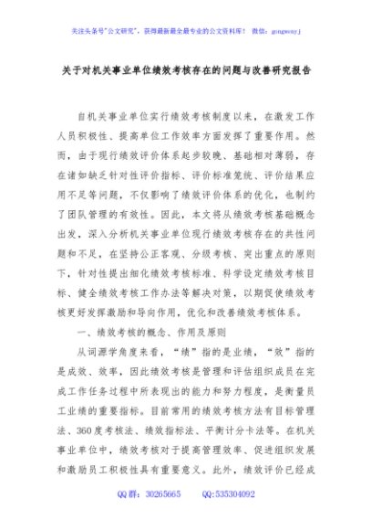 / 关于对机关事业单位绩效考核存在的问题与改善研究报告