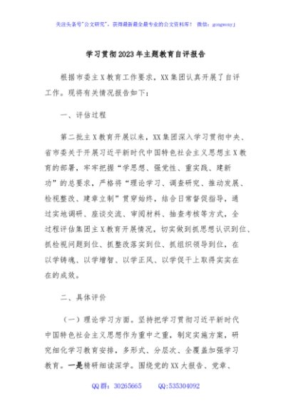 / 学习贯彻2023年主题教育自评报告