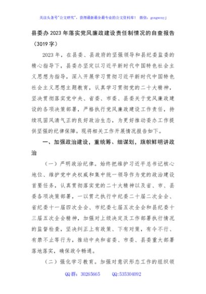 / 县委办2023年落实党风廉政建设责任制情况的自查报告