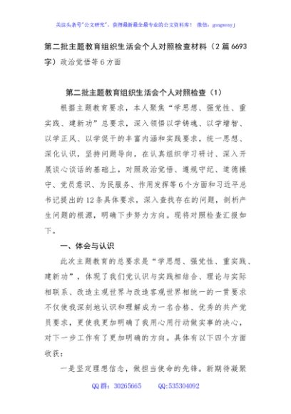 / 主题教育专题组织生活个人对照检查材料(2篇政治觉悟等6方面