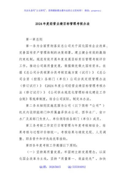 / 2024年度经营业绩目标管理考核办法