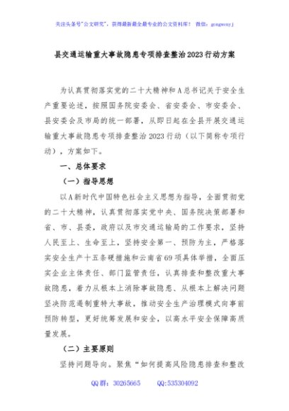 / 县交通运输重大事故隐患专项排查整治2023行动方案