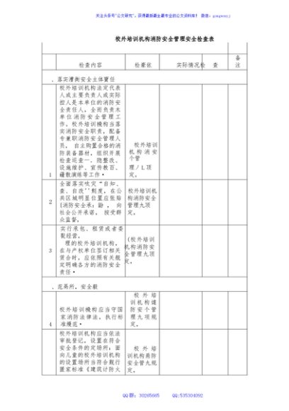 / 校外培训机构九项规定消防安全管理安全检查表