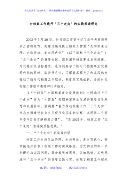 / 对档案工作践行“三个走向”的实践探索研究