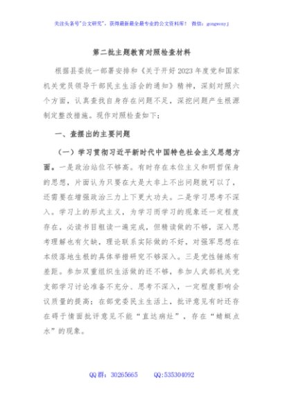 【参考材料】党内主题教育专题生活会六个方面查摆问题素材(316条)