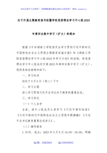 / 关于开展主题教育读书班暨学校党委理论学习中心组2023年第四次集中学习(扩大)的通知