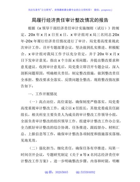 / 履行经济责任审计整改情况的报告