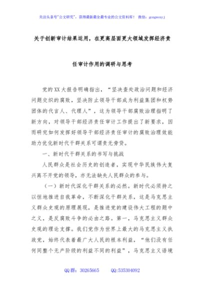 / 关于创新审计结果运用,在更高层面更大领域发挥经济责任审计作用的调研与思考