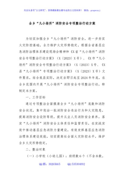 / 全乡“九小场所”消防安全专项整治行动方案