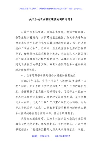 / 关于加快农业强区建设的调研与思考