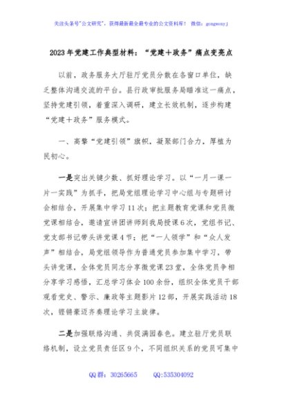 / 2023年党建工作典型材料:“党建+政务”痛点变亮点
