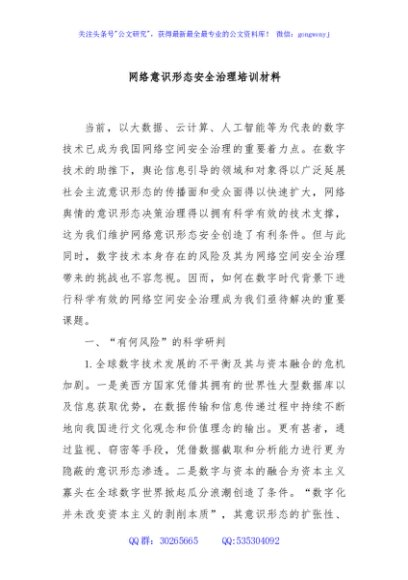 网络意识形态安全治理培训材料