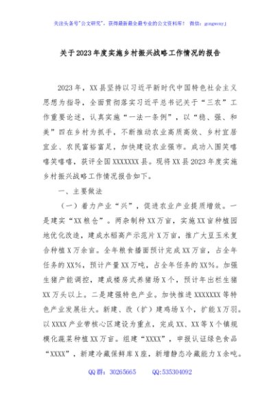 / 关于2023年度实施乡村振兴战略工作情况的报告