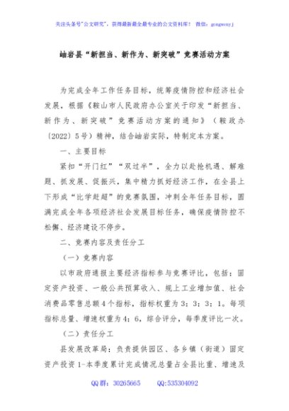 / XX县“新担当、新作为、新突破”竞赛活动方案