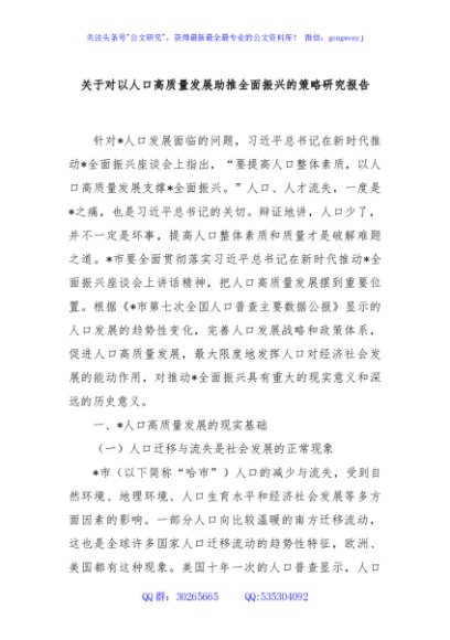/ 关于对以人口高质量发展助推全面振兴的策略研究报告