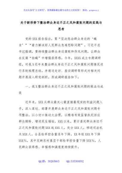 关于新形势下整治群众身边不正之风和腐败问题的实践与思考