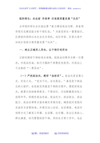 / 组织部长:走在前 作表率 打造高质量发展“尖兵”