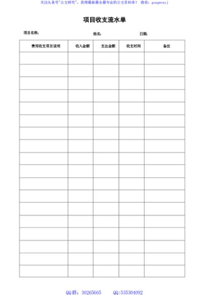 项目收支流水单