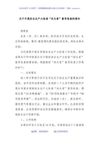 / 关于开展安全生产大检查“回头看”督导检查的通知