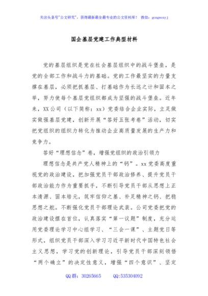 / 国企基层党建工作典型材料