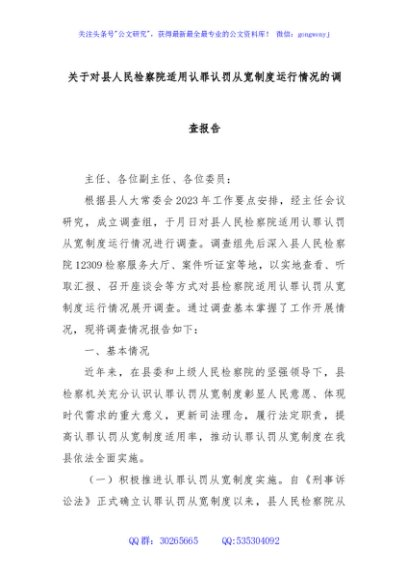 / 关于对县人民检察院适用认罪认罚从宽制度运行情况的调查报告