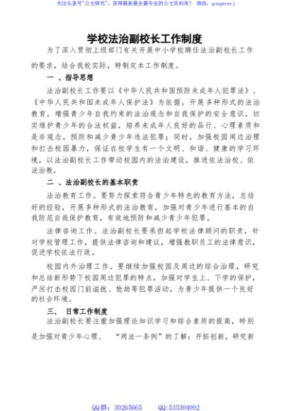 / 学校法制副校长工作制度- 法治副校长
