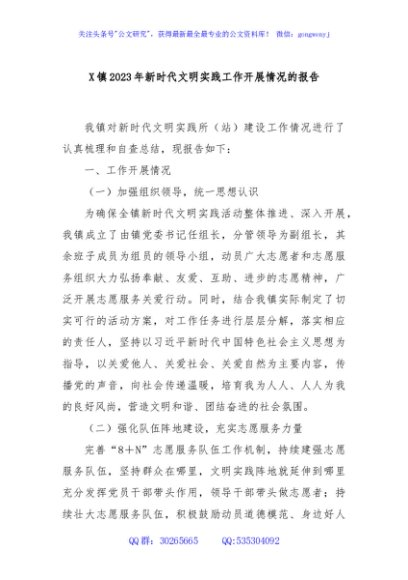 / X镇2023年新时代文明实践工作开展情况的报告