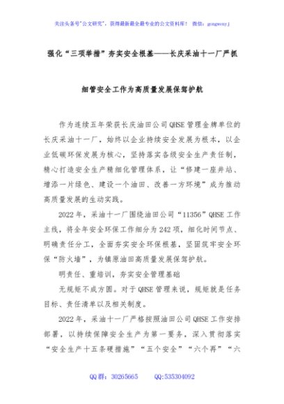/ 强化“三项举措”夯实安全根基——长庆采油十一厂严抓细管安全工作为高质量发展保驾护航