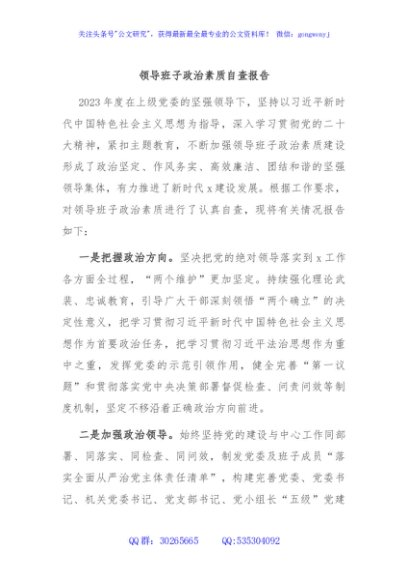 / 领导班子政治素质自查报告