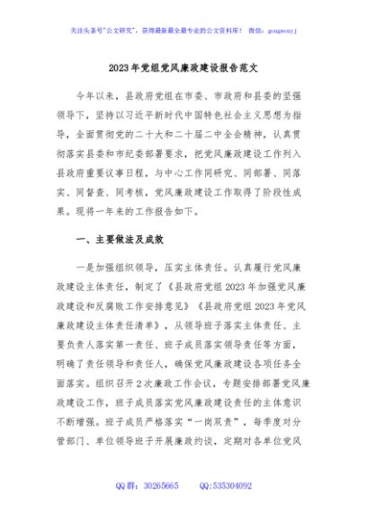 2023年党组党风廉政建设报告范文