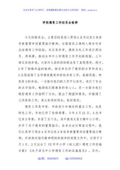 / 学校德育工作动员会致辞
